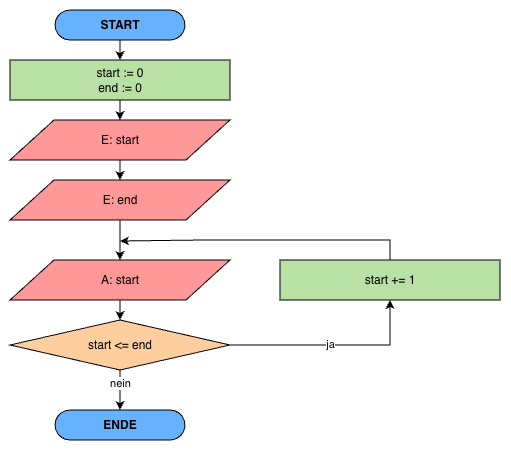 Nun hast du die Aufgabe ein Programm zu erstellen, das den Benutzer auffordert eine "Endzahl" einzugeben (z.B. 60). Dein Programm soll danach die Fibonacci-Folge bis zur Endzahl ausgeben. Erstelle einen Programmablaufplan (PAP) und setze diesen in Code um.